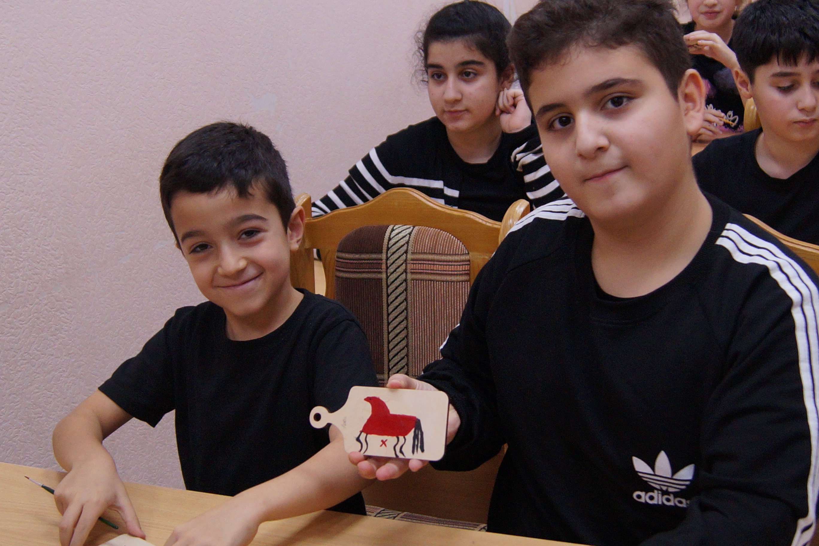 Под руководством наставника ребята учились выводить традиционные узоры – стремительных коней, красные солнечные символы и причудливые геометрические орнаменты. Каждый смог создать свой собственный, уникальный сувенир, заряженный теплом и энергией древнего искусства.